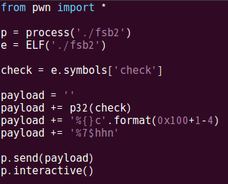 p32(check)에는 0x7777이 저장되어 있고 그 다음 2바이트, 즉 p32(check+2)에는 0x8888을 넣어야 한다.